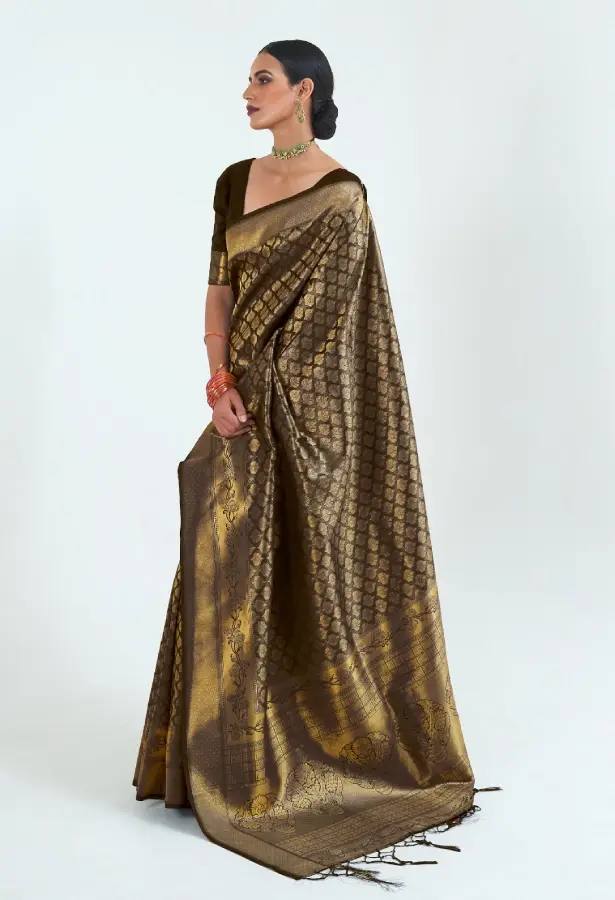 Midnight Black Kanjivaram Silk Saree with Gold Border